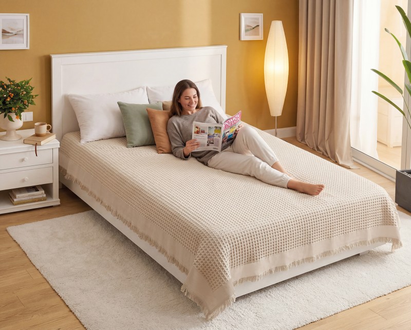 • Lehký přehoz s vaflovou strukturou má multifunkční použití. Lze ho využít jako dekorativní přehoz na postel, sedací soupravu a zároveň může sloužit jako další vrstva pro zahřátí.